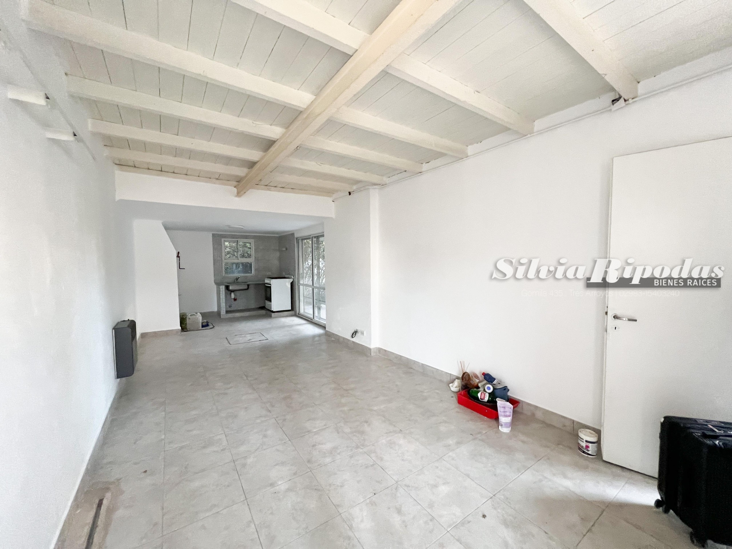 Casa en lote de 10 x 17. Planta baja: garaje doble, baño, amplio ambiente integrado y patio. Planta alta: dos dormitorios, baño y terraza.